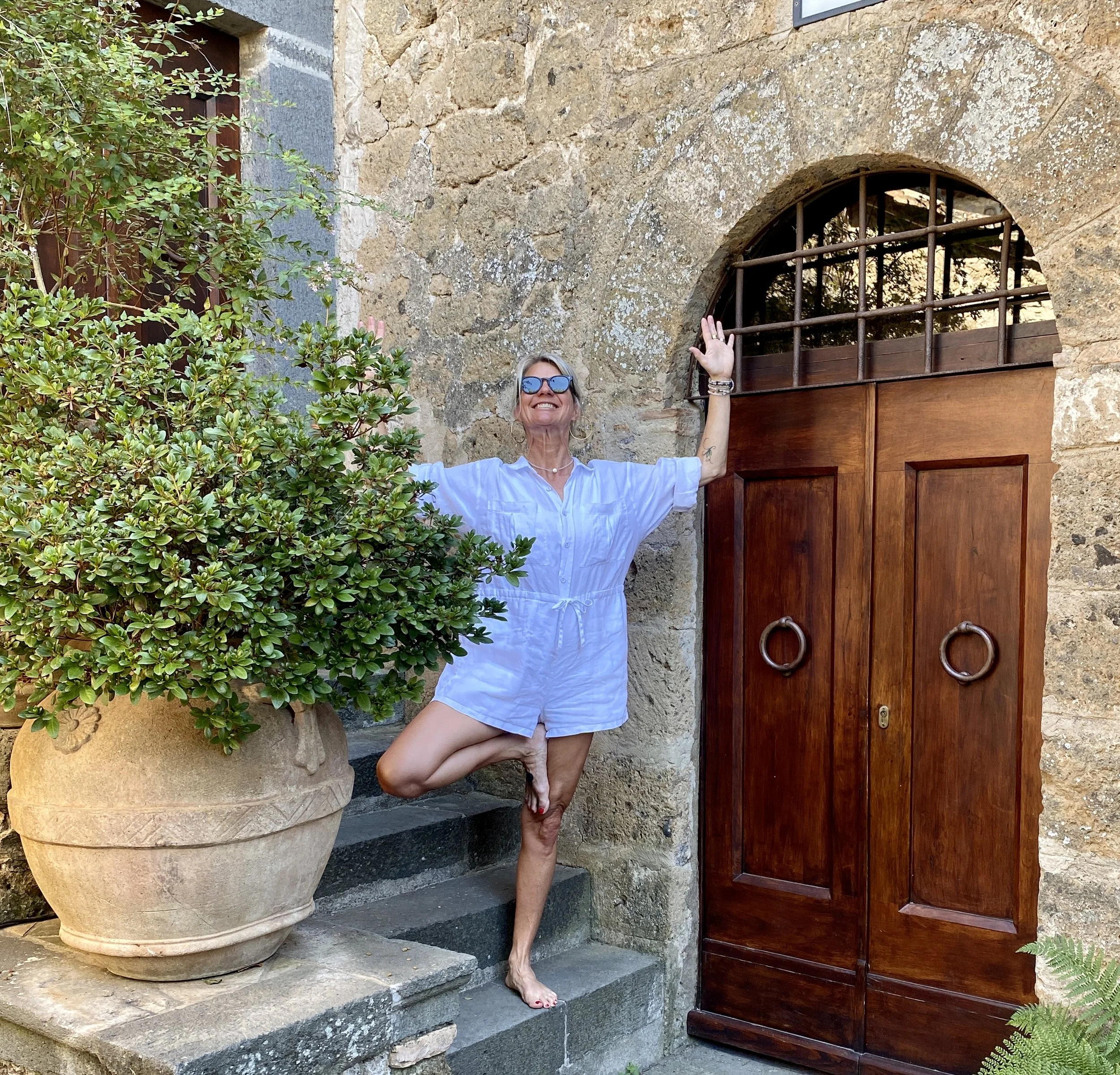“I took my first ever class with Jenny in Italy several years ago. A friend had told me about a yoga retreat at an organic farm in rural Umbria and even though she herself couldn’t attend that year (we were able to go together the following year) I decided to jump right in. It was one of the most enjoyable experiences of my life and I cannot wait to return. Jenny is a truly incredible teacher, she can sense exactly what is needed and give a class perfectly pitched for the mood and climate. The retreat was so well organized, the setting was exquisite, the food and wine beyond delicious and the excursions so much fun. Most of all the company was delightful, I am still in touch with many of the new friends I made there.”